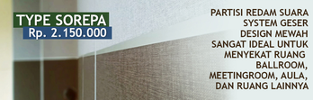 Produk penyekat ruangan paket hemat anggaran ini, dapat menjadi alternatif buat ruangan anda, dengan system mirip dengan type SOREPA, type nice partisi lebih ringan dan menyekat ruang dengan sempurna meskipun tidak memiliki spek redam suara
